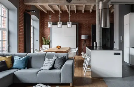 The industrial style stands out in airy, bright spaces with high ceilings. It favours simplicity and unexpected contrasts. The mainstay of this style is concrete combined with metal. But glass works just as well here. An industrial chandelier made by Czech glassmakers definitely adds a unique atmosphere to the interior.