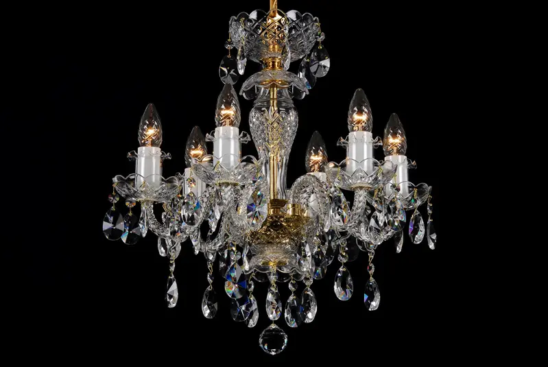 Our crystal chandeliers are always adorned with the highest quality crystal trimmings, which are produced on the most modern cutting machines. The chandeliers thus achieve an exceptionally high brilliance when lit, where the decomposition of the light spectrum through the crystal trimmings multiplies the power of the bulbs.
