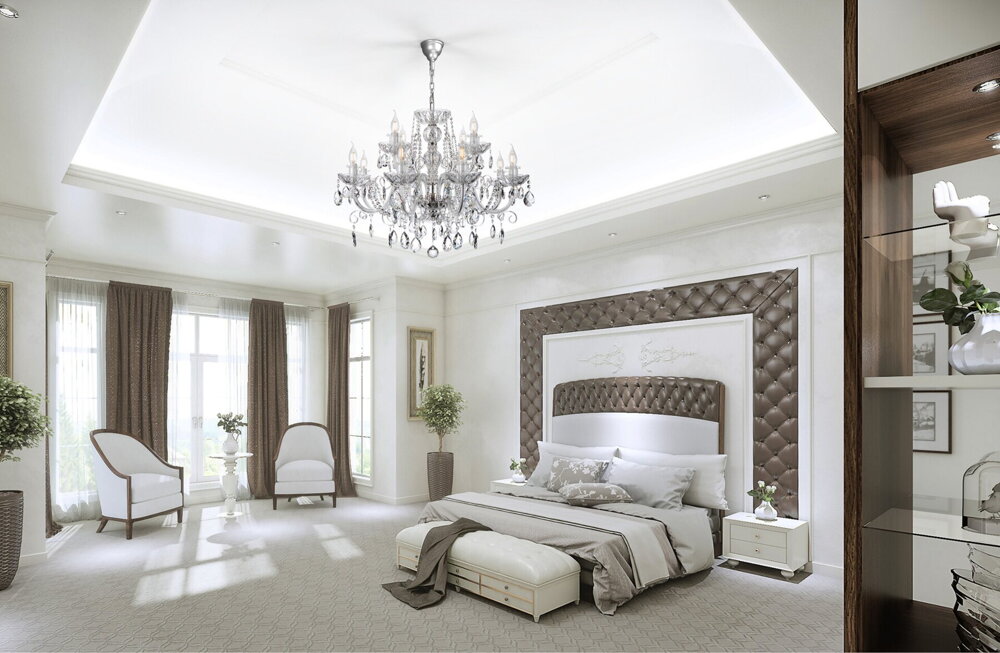 There are many ways to incorporate a crystal chandelier into your bedroom design, whether as a dominant feature or as a subtle detail. Whether you dream of your bedroom as a royal palace or are a lover of modern design, there is a crystal chandelier for everyone.