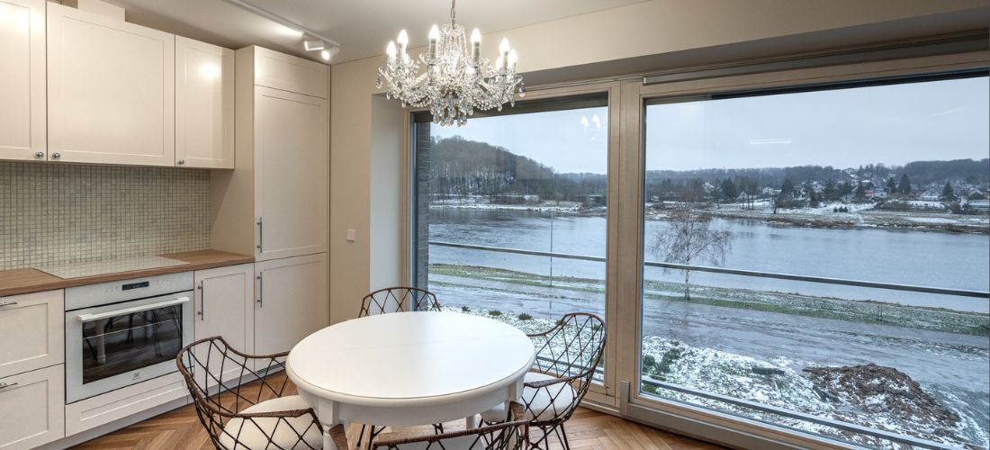 Take a look at how it complements the interior of our customer from Lithuania. His modern home features a large open space with panoramic windows that offer breathtaking views of the river.