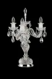 Table lamp with three twisted arms is richly decorated with cut trimmings made of Czech crystal - almond-shaped pendants with star-cut, and other glittering cut and hand-molded glass parts. The lamp is produced in silver version. The fixture will be a nice complement to the chandeliers of the same design. It is suitable for living room as well as for representative public spaces decorated in classic style.