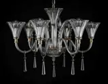 The bottom of the chandelier is decorated with precisely cut crystal trimmings that catch the light and turn it into an iridescent glow. The pendants are fixed on the arms by decorative rings.